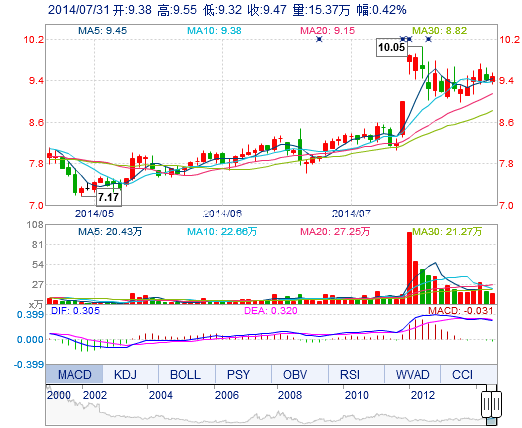 | 今 開: | 9.38 | 成交量: | 15.37萬手 | 振 幅: | 2.44% |