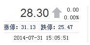 今開: 28.32 成交量: 9.49萬(wan) 手 振幅: 1.38% 最高: 28.50 成交額: 2.68億(yi) 元 換手率: 1.50% 最低: 28.11 總市值: 185.32億(yi) 市淨率: 10.90 昨收: 28.30 流通市值...