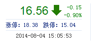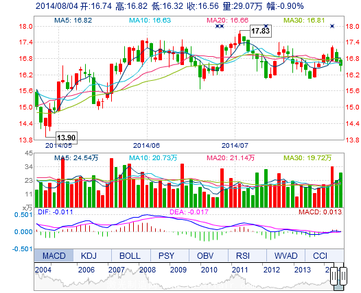 今開: 16.74 成交量: 29.07萬(wan) 手 振幅: 2.99% 最高: 16.82 成交額: 4.78億(yi) 元 換手率: 3.04% 最低: 16.32 總市值: 174.80億(yi) 市淨率: 4.74 昨收: 16.71 流通市值...
