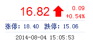 | 最 高: | 16.91 | 成交額: | 5066.01萬元 | 換手率: | 2.25% |
