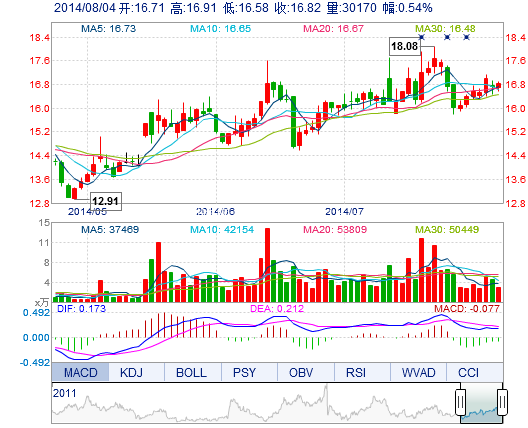 | 今 開: | 16.71 | 成交量: | 3.02萬手 | 振 幅: | 1.97% |
