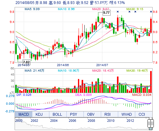 | 今 開: | 8.98 | 成交量: | 53.85萬手 | 振 幅: | 7.47% |