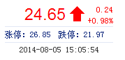 今開: 24.51 成交量: 3.37萬(wan) 手 振幅: 2.99% 最高: 24.89 成交額: 8301.10萬(wan) 元 換手率: 0.65% 最低: 24.16 總市值: 160.72億(yi) 市淨率: 6.13 昨收: 24.41 流通市...