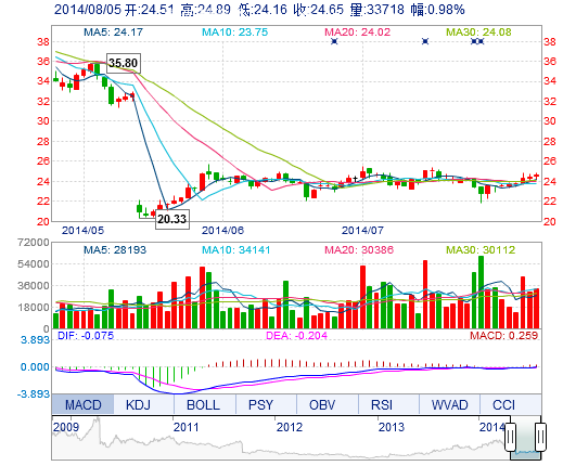 | 今 開: | 24.51 | 成交量: | 3.37萬手 | 振 幅: | 2.99% |