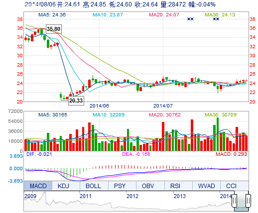 | 今 開: | 24.61 | 成交量: | 2.85萬手 | 振 幅: | 1.01% |