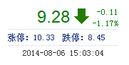 | 今 開: | 9.33 | 成交量: | 11.33萬手 | 振 幅: | 2.02% |