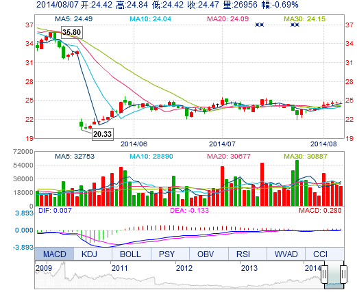 | 最 低: | 24.42 | 總市值: | 159.54億 | 市淨率: | 6.08 |