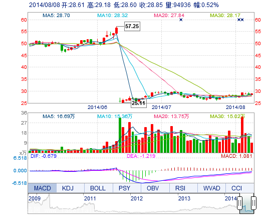 | 今 開: | 28.61 | 成交量: | 9.49萬手 | 振 幅: | 2.02% |
