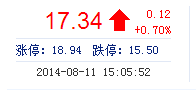 今開: 17.25 成交量: 24.77萬(wan) 手 振幅: 2.32% 最高: 17.46 成交額: 4.29億(yi) 元 換手率: 2.59% 最低: 17.06 總市值: 183.04億(yi) 市淨率: 4.96 昨收: 17.22 流通市值...