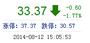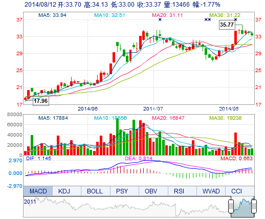 | 今 開: | 33.70 | 成交量: | 1.35萬手 | 振 幅: | 3.33% |