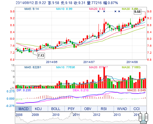 今 開: | 9.22 | 成交量: | 7.72萬手 | 振 幅: | 4.33% |