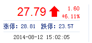 | 今 開: | 26.43 | 成交量: | 5.36萬手 | 振 幅: | 7.14% |