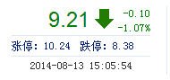 今開: 9.31 成交量: 5.29萬(wan) 手 振幅: 2.69% 最高: 9.37 成交額: 4875.49萬(wan) 元 換手率: 1.92% 最低: 9.12 總市值: 26.25億(yi) 市淨率: 4.09 昨收: 9.31 流通市值: ...