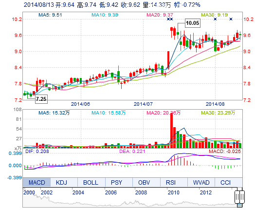| 最 高: | 9.74 | 成交額: | 1.38億元 | 換手率: | 3.29% |