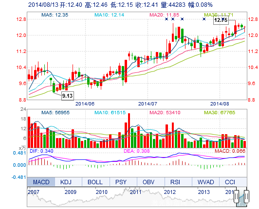 | 今 開: | 12.40 | 成交量: | 4.43萬手 | 振 幅: | 2.50% |