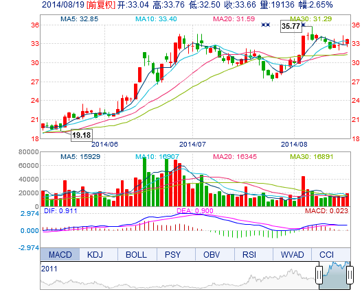 | 最 高: | 33.76 | 成交額: | 6348.33萬元 | 換手率: | 7.18% |