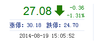 | 最 高: | 27.66 | 成交額: | 1.12億元 | 換手率: | 0.79% |