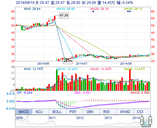 | 今 開: | 29.47 | 成交量: | 14.45萬手 | 振 幅: | 1.95% |