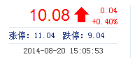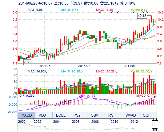 今開: 10.07 成交量: 25.18萬(wan) 手 振幅: 3.29% 最高: 10.30 成交額: 2.55億(yi) 元 換手率: 2.83% 最低: 9.97 總市值: 89.82億(yi) 市淨率: 3.36 昨收: 10.04 流通市值:...