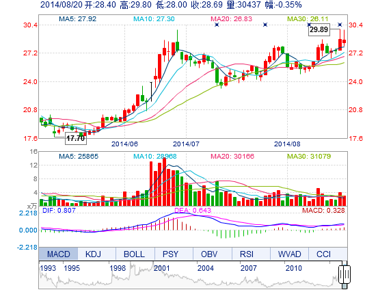 | 最 高: | 29.80 | 成交額: | 8810.62萬元 | 換手率: | 1.75% |
