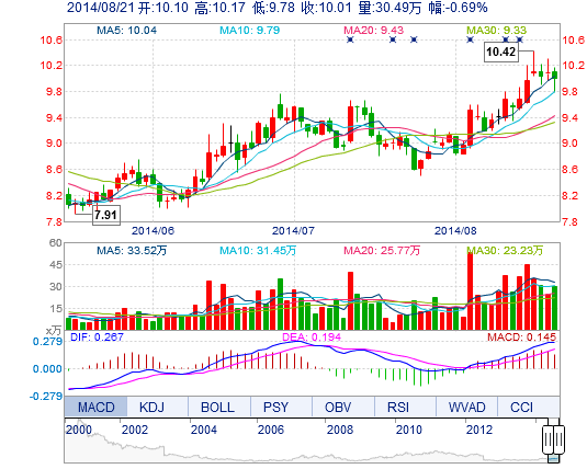 | 最 高: | 10.17 | 成交額: | 3.02億元 | 換手率: | 3.42% |