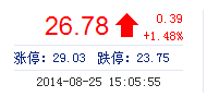 | 最 高: | 27.08 | 成交額: | 1.10億元 | 換手率: | 0.78% |