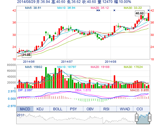 | 今 開: | 36.94 | 成交量: | 1.25萬手 | 振 幅: | 10.78% |