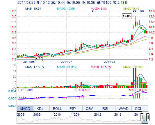 今開: 10.12 成交量: 7.92萬(wan) 手 振幅: 3.86% 最高: 10.44 成交額: 8128.16萬(wan) 元 換手率: 2.87% 最低: 10.05 總市值: 29.50億(yi) 市淨率: 4.70 昨收: 10.10 流通市...