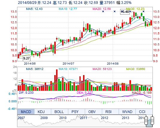 | 最 高: | 12.73 | 成交額: | 4779.34萬元 | 換手率: | 1.91% |