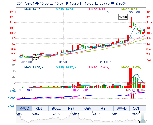 今開: 10.36 成交量: 8.88萬(wan) 手 振幅: 4.06% 最高: 10.67 成交額: 9366.69萬(wan) 元 換手率: 3.22% 最低: 10.25 總市值: 30.35億(yi) 市淨率: 4.83 昨收: 10.35 流通市...