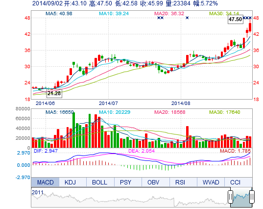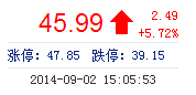 | 最 高: | 47.50 | 成交額: | 1.05億元 | 換手率: | 6.45% |