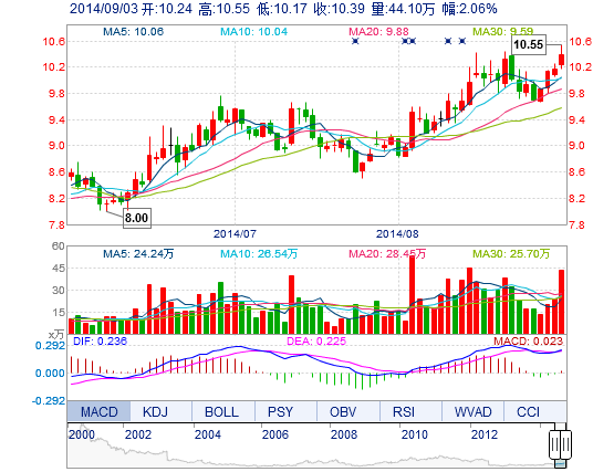 | 最 高: | 10.55 | 成交額: | 4.57億元 | 換手率: | 4.95% |