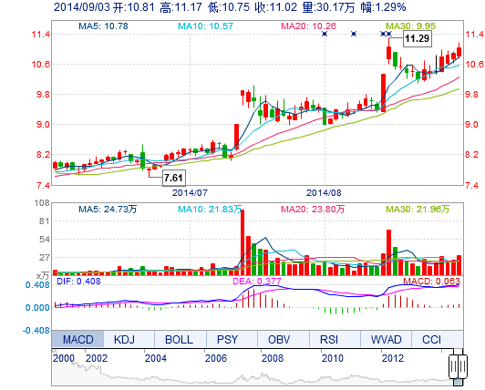 | 今 開: | 10.81 | 成交量: | 30.17萬手 | 振 幅: | 3.86% |