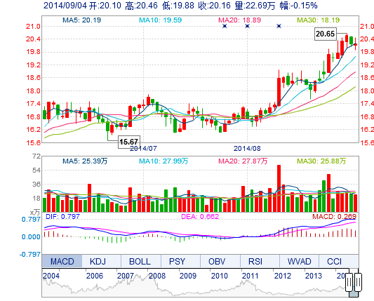 今開: 20.10 成交量: 22.69萬(wan) 手 振幅: 2.87% 最高: 20.46 成交額: 4.57億(yi) 元 換手率: 2.37% 最低: 19.88 總市值: 212.84億(yi) 市淨率: 5.78 昨收: 20.19 流通市值...