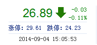 | 最 高: | 26.96 | 成交額: | 9731.98萬元 | 換手率: | 0.69% |