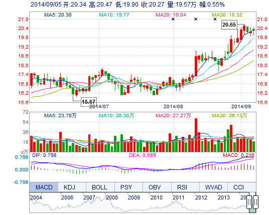 | 最 高: | 20.47 | 成交額: | 3.95億元 | 換手率: | 2.05% |