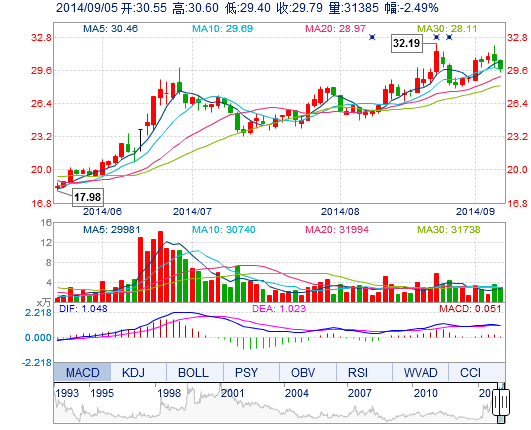 | 今 開: | 30.55 | 成交量: | 3.14萬手 | 振 幅: | 3.93% |
