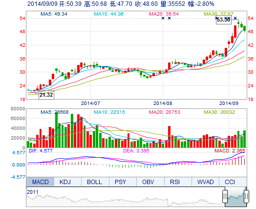 | 今 開: | 50.39 | 成交量: | 3.56萬手 | 振 幅: | 5.96% |