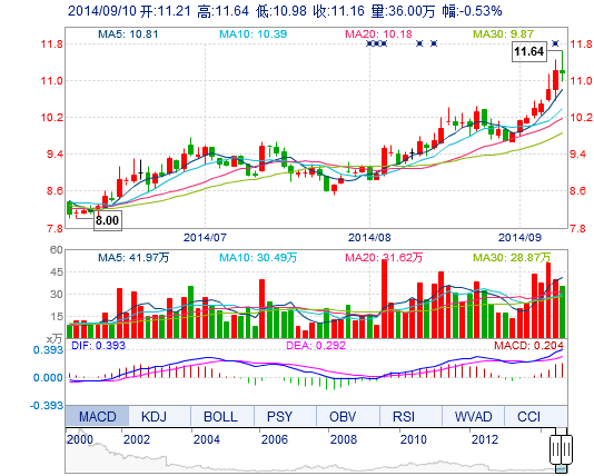 | 最 高: | 11.64 | 成交額: | 4.03億元 | 換手率: | 4.04% |