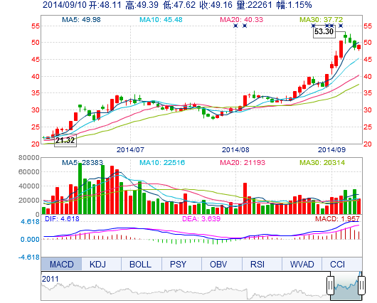 | 最 高: | 49.39 | 成交額: | 1.08億元 | 換手率: | 6.14% |