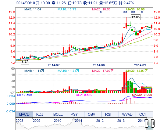 | 今 開: | 10.90 | 成交量: | 12.85萬手 | 振 幅: | 4.39% |