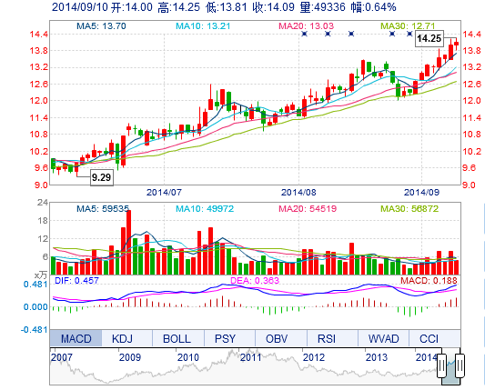 | 今 開: | 14.00 | 成交量: | 4.93萬手 | 振 幅: | 3.14% |
