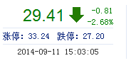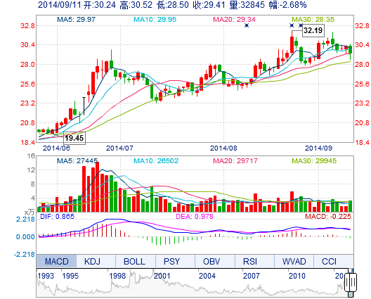 | 今 開: | 30.24 | 成交量: | 3.28萬手 | 振 幅: | 6.68% |
