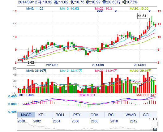 今開: 10.92 成交量: 20.60萬(wan) 手 振幅: 2.38% 最高: 11.02 成交額: 2.25億(yi) 元 換手率: 2.31% 最低: 10.76 總市值: 97.93億(yi) 市淨率: 3.62 昨收: 10.91 流通市值...