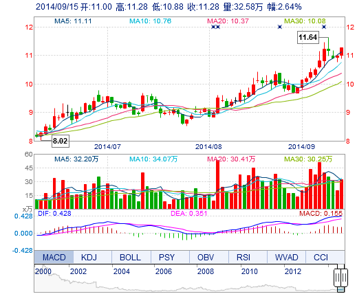 | 最 高: | 11.28 | 成交額: | 3.60億元 | 換手率: | 3.66% |