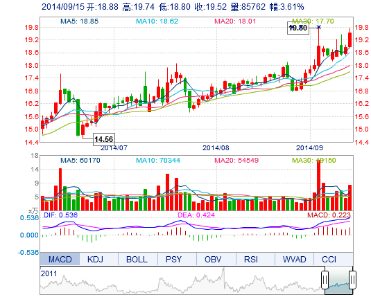 | 最 高: | 19.74 | 成交額: | 1.66億元 | 換手率: | 6.40% |