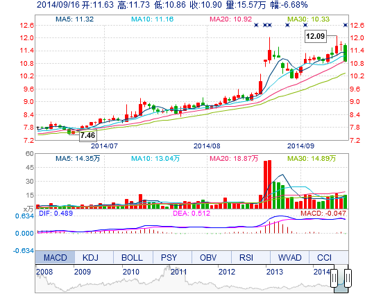 今 開: | 11.63 | 成交量: | 15.57萬手 | 振 幅: | 7.45% |