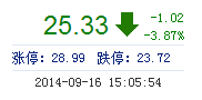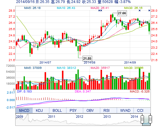 今開: 26.35 成交量: 5.06萬(wan) 手 振幅: 7.10% 最高: 26.79 成交額: 1.32億(yi) 元 換手率: 0.97% 最低: 24.92 總市值: 165.52億(yi) 市淨率: 9.10 昨收: 26.35 流通市值...