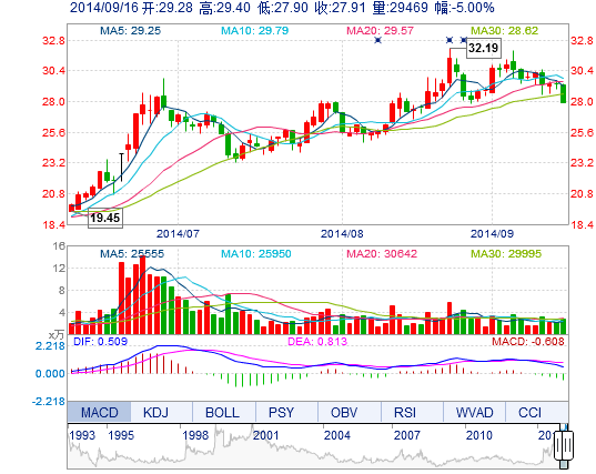 | 今 開: | 29.28 | 成交量: | 2.95萬手 | 振 幅: | 5.11% |