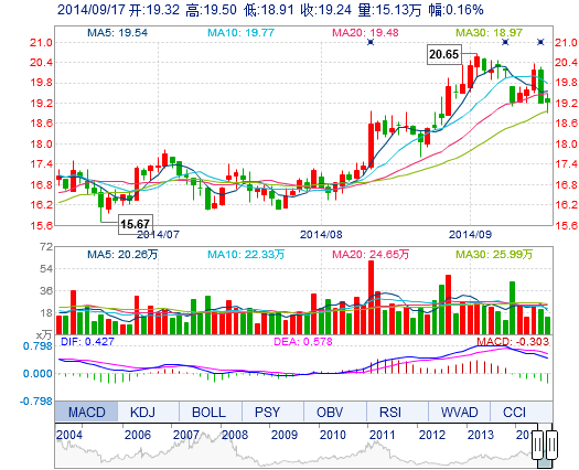 今開: 19.32 成交量: 15.13萬(wan) 手 振幅: 3.07% 最高: 19.50 成交額: 2.90億(yi) 元 換手率: 1.58% 最低: 18.91 總市值: 203.13億(yi) 市淨率: 5.52 昨收: 19.21 流通市值...